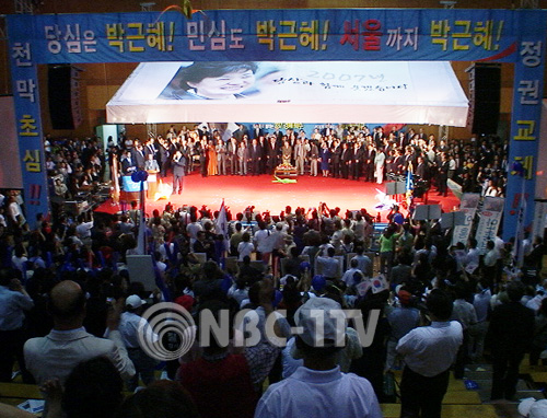 박근혜 대선 예비후보는 12일 오후2시 서울 올림픽공원 역도경기장에서 서청원, 최병렬 두 중앙선대위 상임고문과 홍사덕 중앙선대위원장, 이혜훈(서울선대위원장)의원을 비롯한 김무성, 김영선, 김용갑, 허태열, 서상기, 최경환, 이규택, 한선교 의원 등 박 후보측 국회의원과 당협위원장 등 7천여 명의 당원들이 참석한 가운데, 간담회를 겸한 서울선대위 발대식을 가졌다.