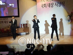 [NBC-1TV 이석아 기자]국회 연구단체 '대중문화 & 미디어 연구회'는 20일 오후 3시 서울 여의도 국회의원회관 대회의실에서 '2010 대한민국 국회대상 시상식'을 갖고, 9개의 부문별 시상과 공로상 및 특별상 등 총 11개 분야를 시상했다.