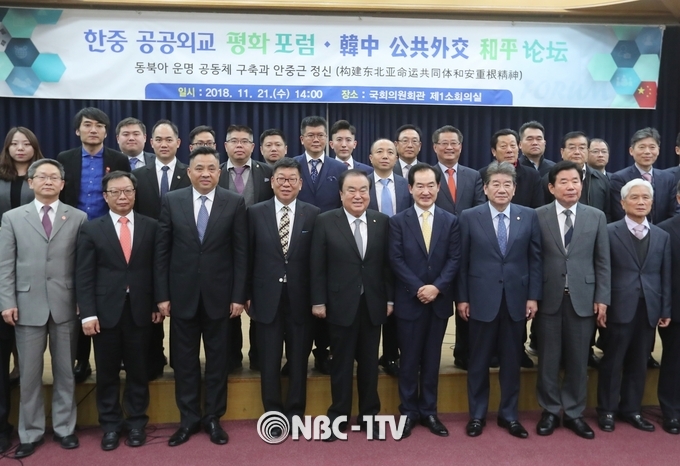 [NBC-1TV 이광윤 보도본부장] 문희상 국회의장은 21일 오후 의원회관에서 열린 「한·중 공공외교 평화포럼」에 참석했다.