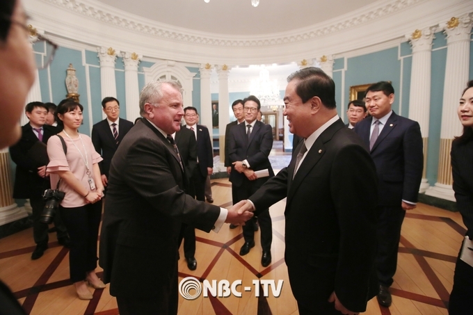 [NBC-1TV 이광윤 보도본부장] 미국을 공식방문 중인 문희상 국회의장은 현지시간 11일 미 국무부를 방문하고, 존 설리번(John Sullivan) 미 국무부 장관대행과 스티븐 비건(Stephen Biegun) 미 국무부 대북정책특별대표와 면담을 가졌다.