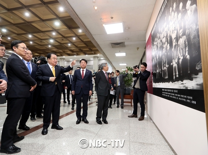 [NBC-1TV 이광윤 보도본부장] 문희상 국회의장은 20일 오전 국회도서관 중앙홀에서 열린 국회도서관 개관 67주년 기념행사에 참석해 국회도서관 이용 우수 국회의원을 시상했다.