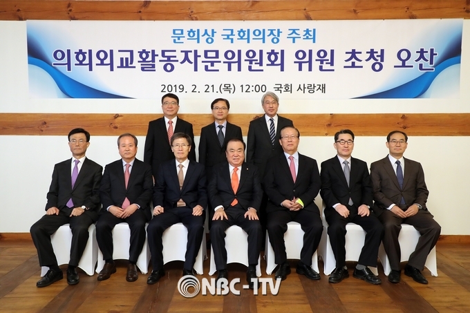 [NBC-1TV 이광윤 보도본부장] 문희상 국회의장은 21일 의회외교활동자문위원회 위원들을 초청해 국회 사랑재에서 오찬을 함께했다. 이날 오찬에는 윤영관 위원장(前 외교통상부장관) 외 9명의 자문위원이 초청됐다. 문 의장은 최근 방미성과와 2019년 의회외교 중점 추진방향을 설명한 후 외유성 출장 근절하기 위해 철저하고 엄격한 사전 심사와 성과평가를 당부했다.