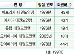 다른 세계태권도연맹 회원국 수는 아프리카태권도연맹 45개, 아시아태권도연맹 43개, 유럽태권도연맹 49개, 판아메리카태권도연맹 44개이다.