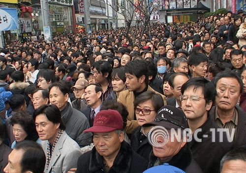 10일 오후 대구 한일극장 앞에서 열린 박 전 대표의 이명박 후보에 대한 지원유세는 3천여 명의 시민들이 운집한 가운데 시작돼 중앙로 일대에는 유세가 진행되는 동안 통행이 마비되는 진풍경을 연출했다.