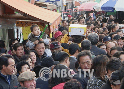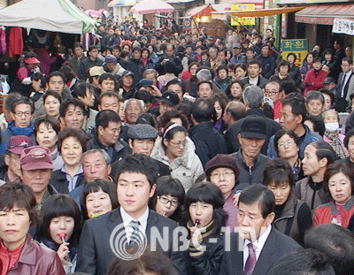 박근혜 전 대표가 나타난 대구(달성) 화원시장이 운집한 인파로 콩나물 시루를 연상케 했다.