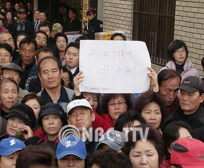 11일 오후 자신의 정치적 본향인 대구 달성에서 이명박 후보 지원유세에 나선 박 전 대표는 연설 1시간 전 부터 몰려든 청중들로 대선 후보들 보다도 뜨거운 환영을 받았다.