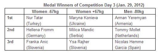 The third and final day of competition on Jan. 29 featured the women's -67kg, the women's +67kg and the men's -80kg.