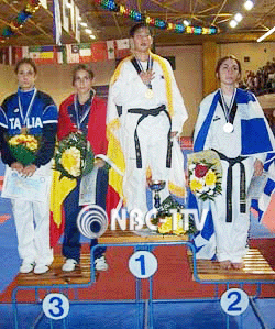 5일, 그리스 헤라크리온 린도체육관에서 벌어진 ‘제4회 청소년태권도선수권대회’ 여자부 밴텀급에서 금메달을 획득한 김경아가 승리 후에 전해진 아버지 김순곤(45 한린제약)씨의 E-메일을 보고 존경과 감동의 눈물을 쏟아냈다.
