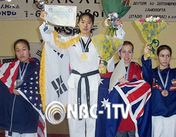김민정은 2일, 그리스 헤라크리온 린도체육관에서 벌어진 ‘제4회 청소년태권도선수권대회’ 라이트 헤비급에서 미국대표로 출전한 한국계 선수 장영신을 4대 3으로 물리치고 영광의 금메달을 목에 걸었다.