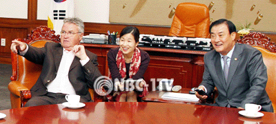 [NBC-1TV 국회출입기자단]강창희 국회의장은 16일 오후 의장집무실에서 거스 히딩크 전 국가대표 감독과 허정무 대한축구협회 부회장의 예방을 받고 유소년 축구 및 장애인 축구 발전방안에 대해 의견을 나눴다.