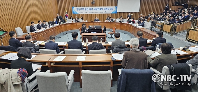 [NBC-1TV 육혜정 기자] 행정구역 통합 관련 제정법률안 입법공청회가 9일 오전 국회 본관 제3회의장에서 개최되고 있다.