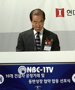 [NBC-1TV 박승훈 기자]현대건설, 대우건설, GS건설, 대림산업 등 10개 대형건설사들은 15일 오전 서울 플라자 호텔에서 김동수 공정거래위원장과 최삼규 대한건설협회 회장, 송재희 중소기업중앙회 부회장, 협력업체 대표 등이 참석한 가운데 '공정거래 및 동반성장 협약' 체결식을 가졌다.