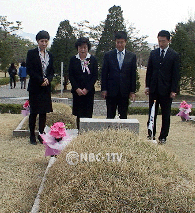 [NBC-1TV 김종우 기자]19일 오전 서울 도봉구 수유리 국립 4.19 민주묘지에서 열린 제51주년 4.19 혁명 기념식에 참석한 미래희망연대 최고위원 정영희 의원이 행사를 마친 후 보좌진들과 묘지를 찾아 개별 참배를 하고 있다.