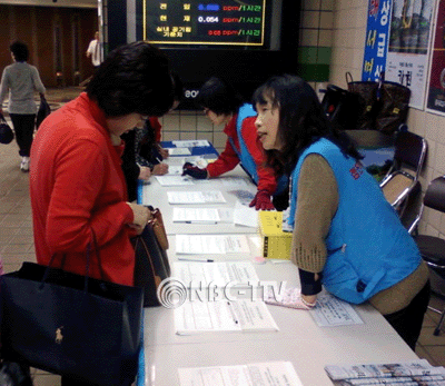 [NBC-1TV 김종우 기자]한국미래포럼 등 160개 시민단체로 결성된 복지포포퓰리즘추방국민운동본부가 세금급식반대 주민투표 위한 서명운동을 전개하고 있는 가운데, 14일 오전 회원들이 명동입구역에서 서명 운동을 벌이고 있다.
