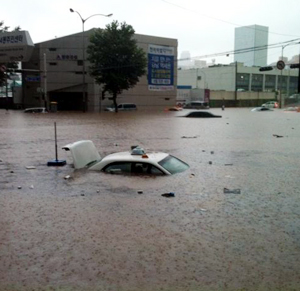 강남역 네거리와 대치동 은마아파트 입구와 길거리 모두가 물에 잠긴 차들로 즐비했고, 서초대로도 택시 등이 지붕까지 완전히 물에 잠겨, 마치 해전에 참가한 잠수함을 연상케 했다.