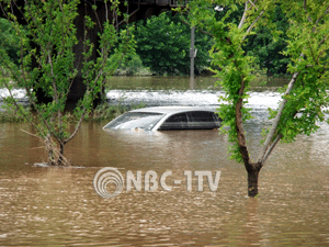 [NBC-1TV 김종우 기자]27일 오전부터 집중된 물폭탄으로 인해 서울 여의도 샛강공원 주차장에 주차된 승용차가 흙탕물에 잠겨 있다.
