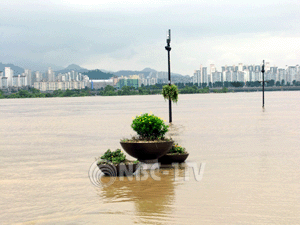 [NBC-1TV 김종우 기자]27일 오전부터 집중된 물폭탄으로 한강이 범람 하면서 서울 여의도 한강 둔치가 흔적(?)도 없이 사라져 버렸다. 둔치에 외롭게 서 있는 화분대가 등대 같은 착시감을 준다.