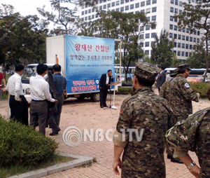 [NBC-1TV 김종우 기자]29일 오후, 여의도 국민은행 앞 도로에서 한 보수단체가 정치성 기자회견을 열었으나 기자들의 모습은 보이지 않는다. 모두 주최측 회원들과 영등포경찰서 정보 관계자들만 자리를 지키고 있다.