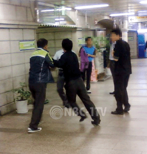 [NBC-1TV 박승훈 기자]29일 늦은 밤, 서울지하철 을지로4가역 역무실 앞에서 취객들이 혈투를 벌이고 있다. 이들은 신고를 받고 출동한 경찰관 앞에서도 주먹 다짐을 펼쳐 결국 지구대로 연행됐다.