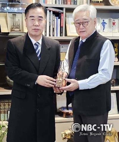 [NBC-1TV 구본환 기자] 본사 이광윤 보도본부장이 15일 오후, 조정원 세계태권도연맹 총재로부터 올림픽박물관 조형물기념패를 받았다.이날 받은 기념패는 지난 2023년 11월 15일, 국제올림픽위원회(IOC)가 운영하는 올림픽박물관에 세워진 태권도 동상을 모티브로 금도금으로 제작된 것이다.