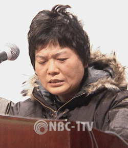 9일 밤 9시54분께 코리아2000 대표 공봉애씨(47·여)가 이천시민회관에 마련된 합동분향소를 찾은 후 대강당에 모인 유가족들을 찾아 대성통곡하며 석고대죄를 했다.