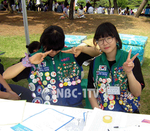 [NBC-1TV 김종우 기자]제57회 현충일 추념식이 6일 오전 10시 서울 동작동 국립서울현충원에서 엄수된 가운데 학생들이 배지로 장식된 유니폼을 입고 자원봉사를 하고 있다.