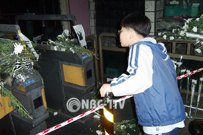 [NBC-1TV 김종우 기자]10년 전인 2003년 2월 18일 오전 9시53분에 발생했던 대구지하철 참사 현장을 찾은 한 어린이가 폴리스라인 앞에서 참혹한 현장을 바라보고 있다.