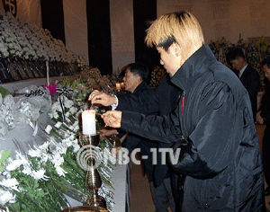 [NBC-1TV 김종우 기자]10년 전인 2003년 2월 18일 오전 9시53분에 발생했던 대구지하철 참사 현장인 대구시민회관에 마련된 희생자분향소를 찾은 김병지(당시 울산 현대) 선수가 고인들의 영전에 헌화하고 있다.