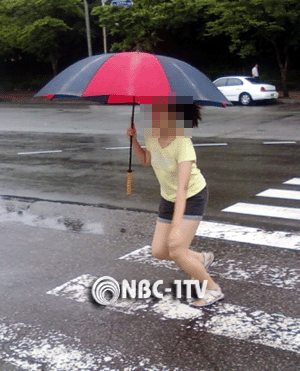 [NBC-1TV 김종우 기자]호우성 장맛비가 내린 7일 오후 서울 여의도의 한 행단보도를 지나가던 시민이 빗줄기가 강해지자 급히 이동하고 있다.