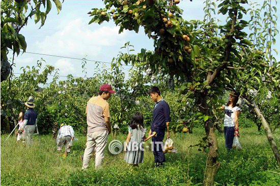 [물망초통신 35호]안녕하세요? 햇살도, 바람도, 기분 좋은 가을입니다. 위 사진은 물망초학교 학생들이 상경원에 가서 사과 배를 따는 모습입니다.