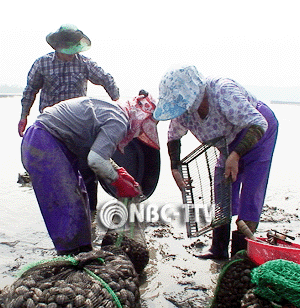 [NBC-1TV 김종우 기자]19일 오후, 5년전 기름 유출 피해를 입었던 의항1구(충남 태안군 소원면) 해변에서 어민들이 바지락을 채취(採取) 하고 있다.