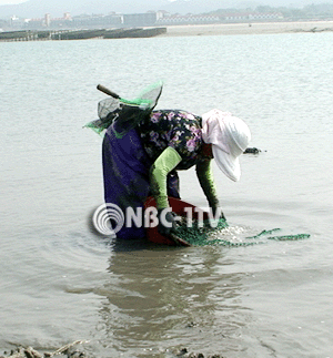 [NBC-1TV 김종우 기자]19일 오후, 5년전 기름 유출 피해를 입었던 의항1구(충남 태안군 소원면) 해변에서 한 어민이 바지락을 채취(採取) 하고 있다.