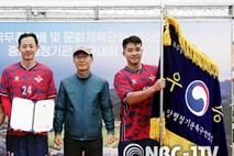 [NBC-1TV 구본환 기자] 국방부가 8일 보령스포츠파크 메인구장에서 막을 내린 '총리배 중앙행정기관 축구대회’에서 정상에 올랐다. 국방부는 문화체육관광부가 주최하고 보령시와 중앙부처축구연합회가 주관한 ‘제30회 국무총리배 중앙행정기관 축구대회’ 결승전에서 국토교통부를 5대 0 대승을 거두고 우승배를 거머쥐었다. 국방부 센터포드 윤준용은 왼쪽 윙과 절묘한 팀윅을 이루며 상대 수비수와 골키퍼를 무력화 시켰는데, 이번 대회에서 무려 8골을 성공 시키며 득점왕의 주인공이 되었다. 한편, 개인상은 다음과 같다. ☞최우수선수상 박재흥(국방부) ☞우수선수상 권희만(국토부) ☞모범선수상 황선필(행안부) ☞감투상 문의진(산업부) ☞득점상 윤준용(국방부) ☞지도자상 김후열 감독(국방부) ☞심판상 유진호(KFA).