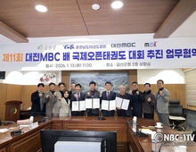 [NBC-1TV 김영근 충남특파원] 제11회 MBC국제오픈태권도대회가 오는 8월 충남 금산에서 열린다. 사단법인 MBC국제오픈태권도조직위원회(이사장 김영근)는 13일 금산군청 상황실에서 금산군과 제11회 대회 개최를 위한 업무협약(MOU)을 체결했다. 협약식에는 박범인 금산군수를 비롯해 진종재 사장, 김진호 충청남도태권도협회장, 김영근 이사장 등 관계자들이 참석했다. 이번 협약에 따라 제11회 MBC국제오픈태권도대회는 오는 8월 6일부터 10일까지 금산군 종합실내체육관에서 개최된다. 박범인 금산군수는 “MBC국제오픈태권도대회를 금산군에서 개최할 수 있도록 힘써주신 진종재 사장, 김진호 회장, 김영근 이사장, 성승환 금산군태권도협회장께 깊이 감사드린다”며 “대회가 성공적으로 개최될 수 있도록 모든 행정적 지원을 아끼지 않겠다”고 밝혔다. 진종재 사장은 “어려운 여건 속에서도 제11회 대회를 금산에서 개최할 수 있도록 적극적으로 유치해 주신 박범인 군수님께 감사드린다”며 “충청남도태권도협회와 조직위원회, 방송국 등 모든 구성원이 힘을 모아 성공적인 대회를 만들겠다”고 말했다. 김진호 충청남도태권도협회장은 “생명의 고장 금산에서 제11회 대회를 개최할 수 있게 된