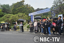 [NBC-1TV 박승훈 기자] 박정희 전 대통령 46주기 추모식이 26일 오전 11시 국립서울현충원에서 엄수되었다. 민족중흥회 주관으로 진행된 이날 추모식에는 정재호 추모위원장의 개식사를 시작으로 장동혁 국민의힘 당대표 및 백승주 국민대학교 석좌교수 추모사, 고인의 육성 청취, 추모가, 추모연주, 추모시 낭송, 조총발사, 묵념, 유족인사, 폐식, 헌화 및 분향 순으로 이어졌다. 빗속에서 진행된 이날 추모식에는 유가족과 장동혁 국민의힘 대표, 송언석 원내대표, 정희용 사무총장 등 국민의힘 지도부 외에 오세훈 서울시장, 국민의힘 대선 후보였던 김문수 전 고용노동부 장관, 김민전 나경원 인요한 의원 등 500여 명의 추모객이 참석했다. 한편, 아래의 최규하 전두환 노태우 전 대통령의 사진은 지난 1999년 10월 26일 있었던 박정희 대통령 제20주년 추모식 때 본사가 근접취재한 것으로 올해 육영수 여사 탄신 100주년을 맞아 기획하고 있는 특집 보도를 위해 관계자들의 효율적인 제보를 위해서 게시된 사진입니다.