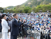 [NBC-1TV 이광윤 보도본부장] 문재인 대통령이 9일, 지지자들의 환송을 받으며 청와대를 떠났다. 청와대 분수대 앞 광장과 도로 주변을 가득 채운 시민들은 “문재인 대통령”을 연호하며, 그의 마지막 퇴근길을 아쉬워했다. 문 대통령과 김정숙 여사는 이날 오후 6시께 청와대 본관을 출발해 정문을 통해 청와대를 나왔다. 청와대 직원들은 파란색·흰색 풍선을 들고 배웅했고, 청와대를 지키는 101경비단원(경찰)들도 일렬로 서서 문 대통령을 향해 마지막 거수경례를 했다. 유은혜 부총리·전해철·황희·박범계·한정애·이인영 등 현 정부의 더불어민주당 출신 장관들도 정문에서 문 대통령을 환송했다. 문 대통령이 김정숙 여사와 함께 정문을 걸어 나오자 시민들이 환호와 박수로 맞았고, 문 대통령 부부는 분수대 앞까지 걸어 나오며 시민들과 악수를 나누었다. 문 대통령은 분수대 앞 광장에 모인 지지자들에게 “여러분 고맙습니다. 다시 출마할까요”라는 농담을 건네며 입을 열었다. 문 대통령은 “마지막 퇴근을 하고나니 무거운 짐을 내려놓는 거 같아서 홀가분하다”며 “많은 분들이 저의 퇴근을 축하해주니 저는 정말 행복하다. 오늘로써 청와대 대통령 시대가 끝났다”며 감사의 뜻을 나타냈다.